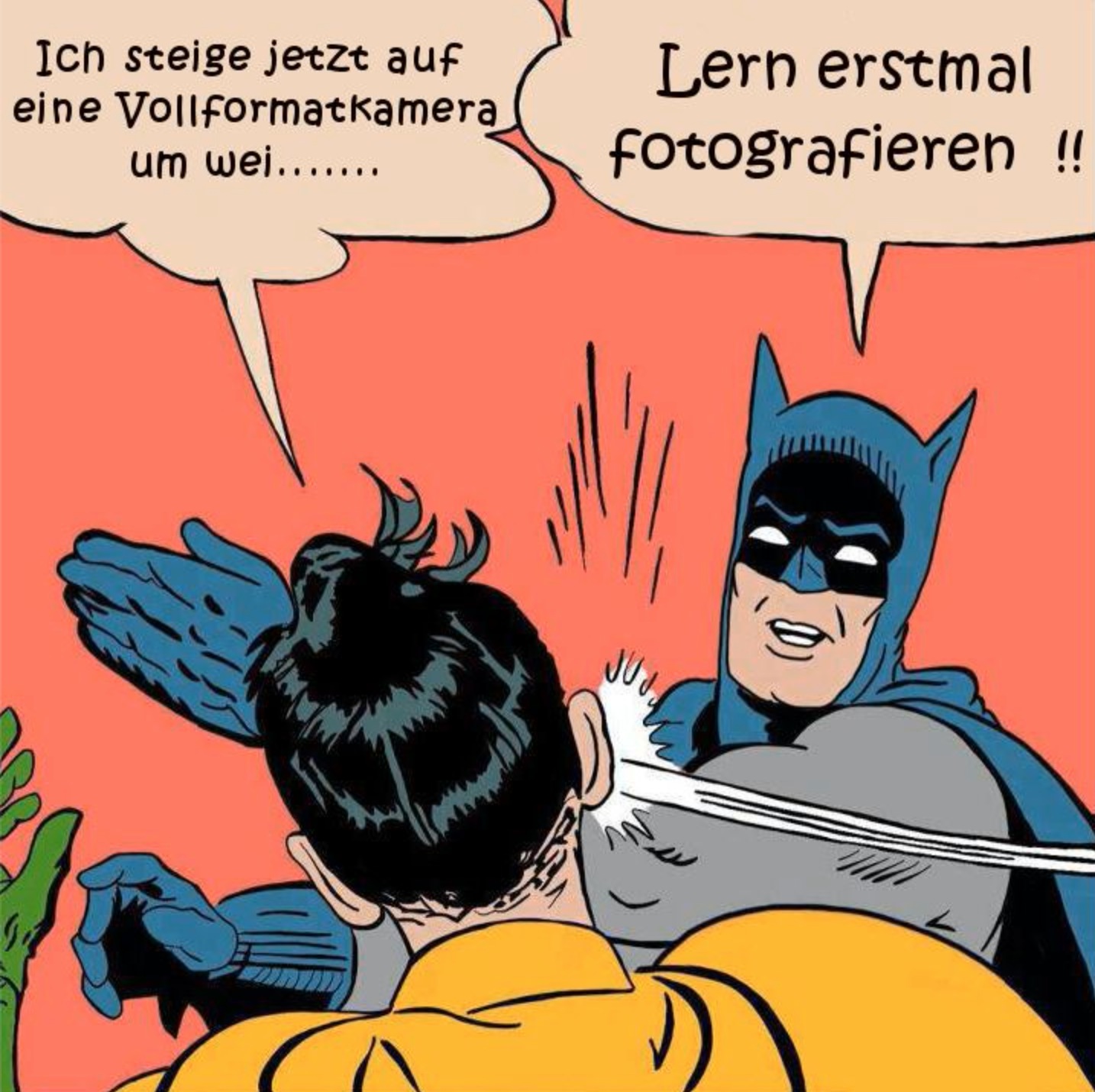 Nicht mehr in Internet-Foren nach der besten Kamera mit den feinsten Pixeln stöbern und auch nicht 5 Stunden am Tag ein Werbevideo nach dem anderen bei YouTube anschauen. Schnappt Euch eine gebrauchte Kamera die technisch gut in Schuss ist und geht hinaus in die Welt und macht geile Fotos. Was nutzt die konkrete Utopie mit 24,37 Megapixeln und 2.013 statt 1.879 Linienpaaren solange ihr dieses teure Ding weder versteht, noch korrekt bedienen könnt und außerdem keine Erfahrung im Umgang mit Motiven habt?