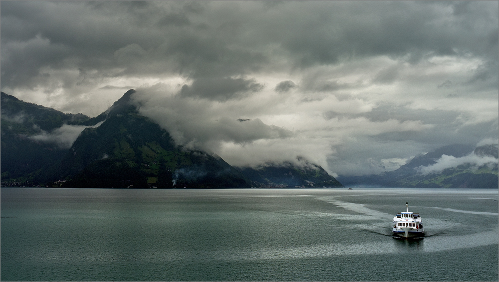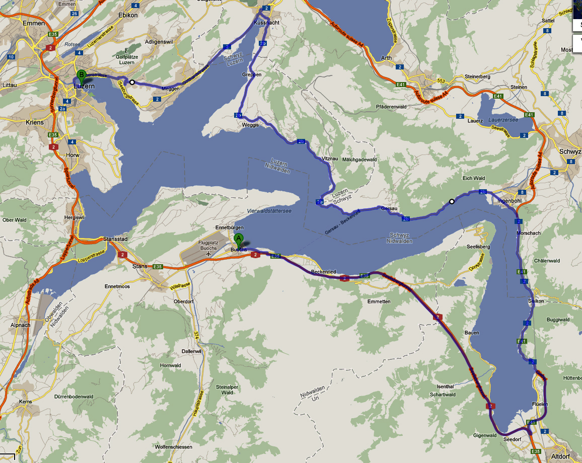 Nach dem Frühstück geht es auf in Richtung Luzern. Wir entscheiden uns für den langen Weg um den süd-östlichen Teil des Sees herum. Kurz hinter Buochs biegen wir bei Beckenried versehentlich falsch ab und landen so in einer wirklich schönen viele Kilometer langen Sackgasse hoch oben auf dem Seelisberg der gewagt in den Vierwaldstätter See hineinragt und famos Ausblicke auf die anderen Ufer dieses auf so wunderbare Art und Weise verzweigten Sees freigibt.