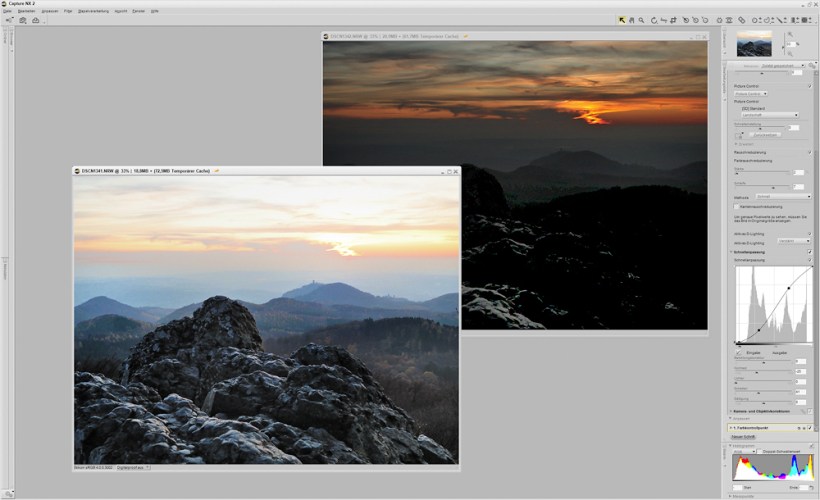 Beim Befehl „Speichern unter“ öffnet Photomatix das bearbeitete Bild dann automatisch in Photoshop – es ist danach dort zweifach geöffnet! Einmal das Original und einmal die Tonemapping-Variante. Die Tonemapping-Variante klicke ich kurz an, dann Strg+A, Strg+C, Strg+F4, Strg+V und schon habe ich ein Bild mit zwei Ebenen. Unten das Original, oben die krassifizierte Tonemapping-Variante. Mit dem Transparenz-Regler der oberen Ebene kann ich nun das Tonemapping beliebig abschwächen, bis es ggfs. gar nicht mehr sichtbar ist. Die Wahrheit liegt meist irgendwo „dazwischen“, aber auch die Extremwerte gefallen mit manchmal wirklich gut.