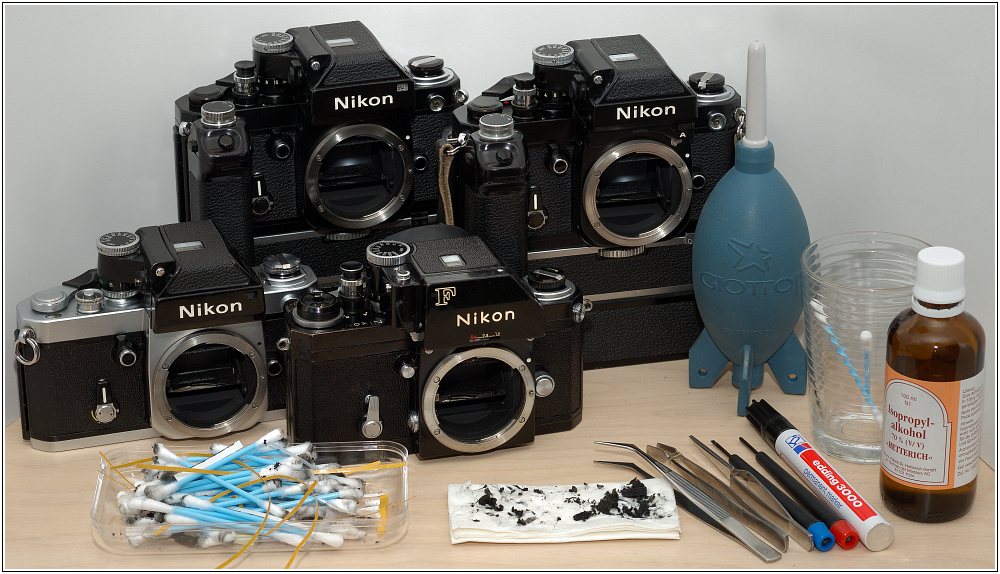 Vor einigen Jahren habe ich in einer Online-Auktion diese geniale alte total verschrammte Nikon F für kleines Geld erstanden. Seite dieser Zeit habe ich mit dieser Kamera viel fotografiert und bin immer wieder überrascht, dass sie nach alle den Jahren noch wirklich gut funktioniert. Der Nachfolger der dieser Kamera war die Nikon F2. Exemplare in gutem Zustand findet man im diversen Online-Auktionen immer wieder für kleines Geld. Meist sind aber der Spiegel-Dämpfer und die Lichtdichtungen marode. Der Austausch ist nicht weiter schwierig. Passende Dichtungskits erhält man via eBay und Co. für etwa 20 Euro. Für den „Einbau“ benötigt man etwas Alkohol, ein paar Zahnstocher, Wattestäbchen, Pinzette und kleine Schraubendreher.