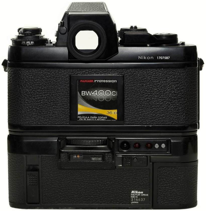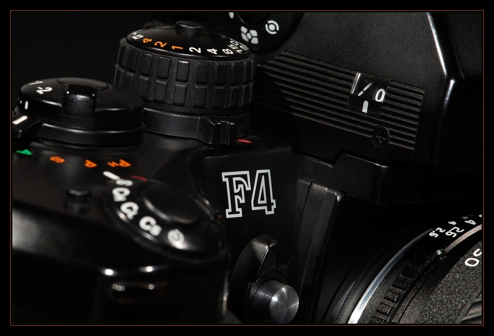 Mit der F4 wurde dann ein modernes Designzeitalter eingeläutet, nun war der Motorantrieb Teil des Gehäuses und man konnte zusätzliche Batterien an die Kamera montieren um die Serienbild-Geschwindigkeit auf 8 Bilder/s zu steigern. Aber in vielerlei Hinsicht blieb man den meisten bewährten Bedienelementen weiterhin treu.