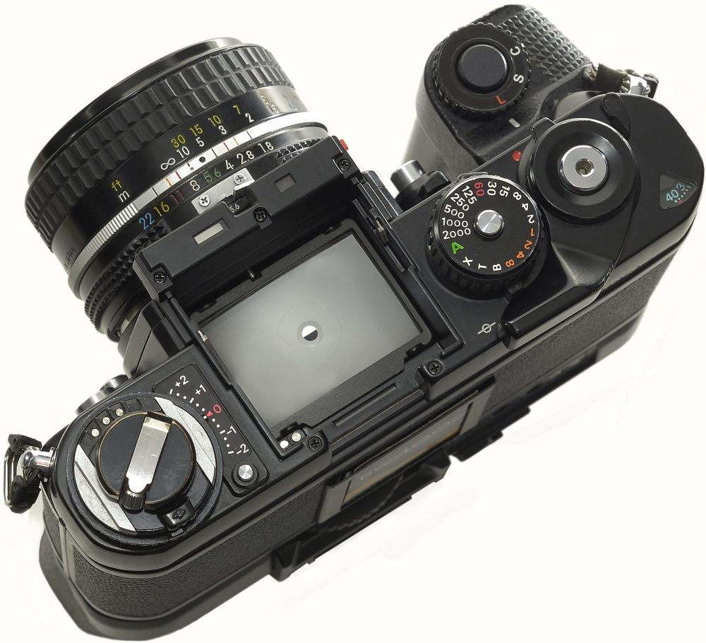 Man kann bei der F3 nicht nur den Sucher austauschen, man kommt auch ohne Probleme an die Mattscheibe. Es gab damals eine sehr große Auswahl unterschiedlicher Mattscheiben zu kaufen. Je nachdem welche Objektive man verwendete konnte man besonders helle Mattscheiben kaufen, es gab Schnittbilder, Prismen und vieles mehr. Allein das war eine Wissenschaft für sich.