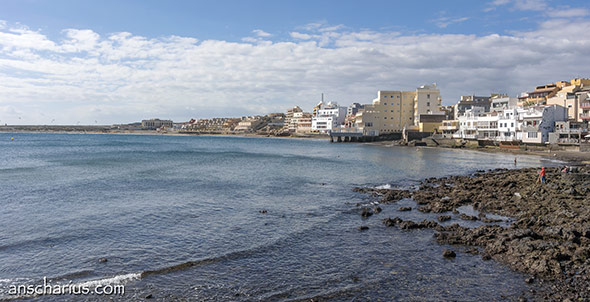 Auf dem Weg zum Hotel ziehen sich die Wolken zu, es sieht aus als würde es wieder Regen geben wie am Tag zuvor. Ich schlage meiner Sandra vor, dass wir auf die andere Seite der Insel fahren und ich ihr endlich mal den Ort El Medano gleich beim Flughafen zeige. Sie willigt ein und so geht es los. Der Weg ist nicht wirklich weit, es sind wieder etwa 90 lässige Autobahnkilometer. Diese Strecke werde ich in den nächsten Wochen noch mehrfach fahren. Denn am 19. Dezember muss meine Sandra wieder abreisen und gleich drauf wird dann mein Sohn Leon für eine Woche auf „meine Insel“ kommen um hier mit mir die Weihnachtstage zu verbringen. Wir waren zuletzt im Jahr 2008 zusammen auf dieser Insel und damals war mein Leon noch ein kleiner Junge!