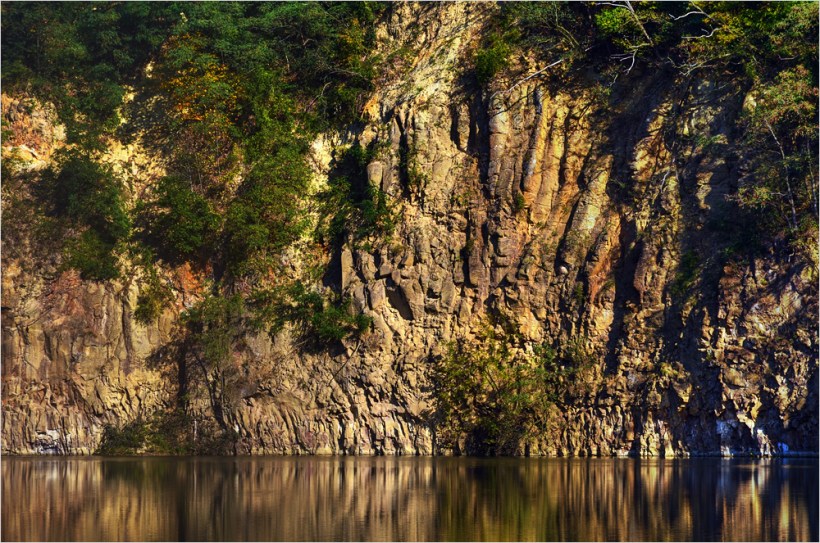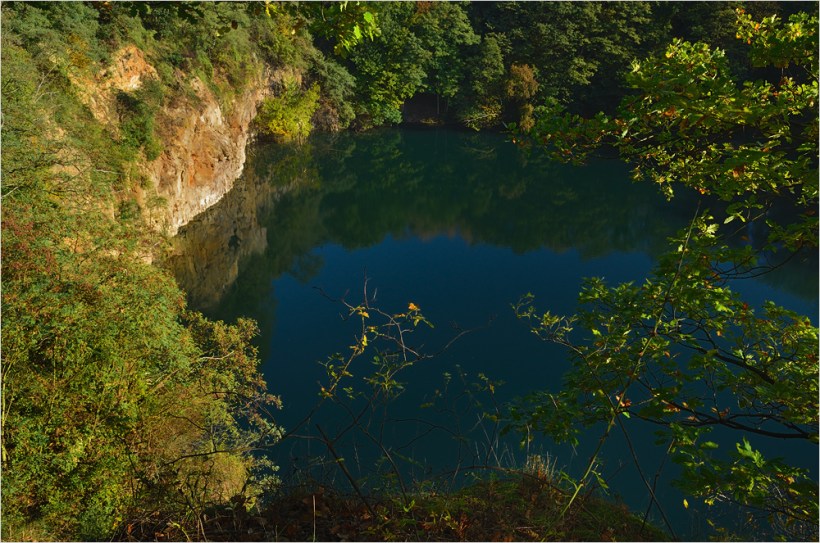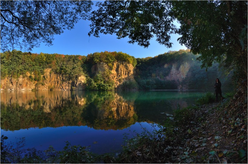 Es ist Wochenende und der Herbst steht vor der Tür. Sandra geht es gar nicht gut, sie hat tagelang im Bett gelegen, aber irgendwann muss sie mal an die frische Luft. Also geht es mit dem Auto auf die andere Rheinseite, dorthin wo einst der Kölner Dom war – ins Siebengebirge. In einem gewaltigen alten Steinbruch hat sich im Laufe der Jahrhunderte ein schöner kleiner See gebildet, der Dornheckensee. Bewaffnet mit der Nikon D7000, drei Objektiven, dem neuem Carbon-Stativ Typ Manfrotto 732CY und einem Manfrotto Kugelkopf Typ 496RC2 geht es ab in den Wald. Das Laub der Bäume ist noch ziemlich grün, vor ein paar Tagen hatten wir ja auch noch Sommer. Die wirklichen Herbstfarben kommen erst noch!