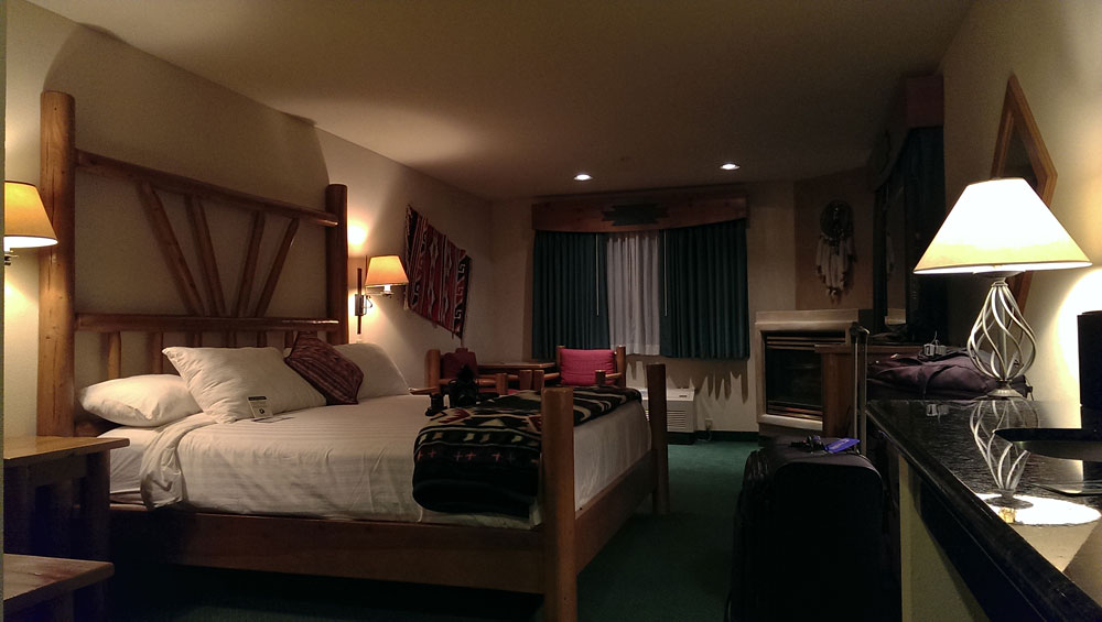 Als ich in Sun Valley eintreffe ist es stockfinster und während ich auf der Suche nach einem Hotel langsam meine Kreise durch die Stadt ziehe wird eine Polizeistreife auf mich aufmerksam. Unauffällig aber bestimmt fahren sie mir hinterher. Jetzt nichts falsch machen, ich will heute ganz sicher keinen Stress mehr mit der Polizei. Als ich zum dritten Mal beim Best Western vorbeifahre entschließe ich mich hier nach einem Zimmer zu fragen. Also halte ich auf dem Parkplatz neben der Rezeption und das Polizeifahrzeug ebenfalls – urgs… Als ich aussteige und die Polizisten grüße winken sie zurück und als sie sehen wie ich die Lobby ansteuere fahren sie langsam weiter. Das ist ja noch einmal gut gegangen.