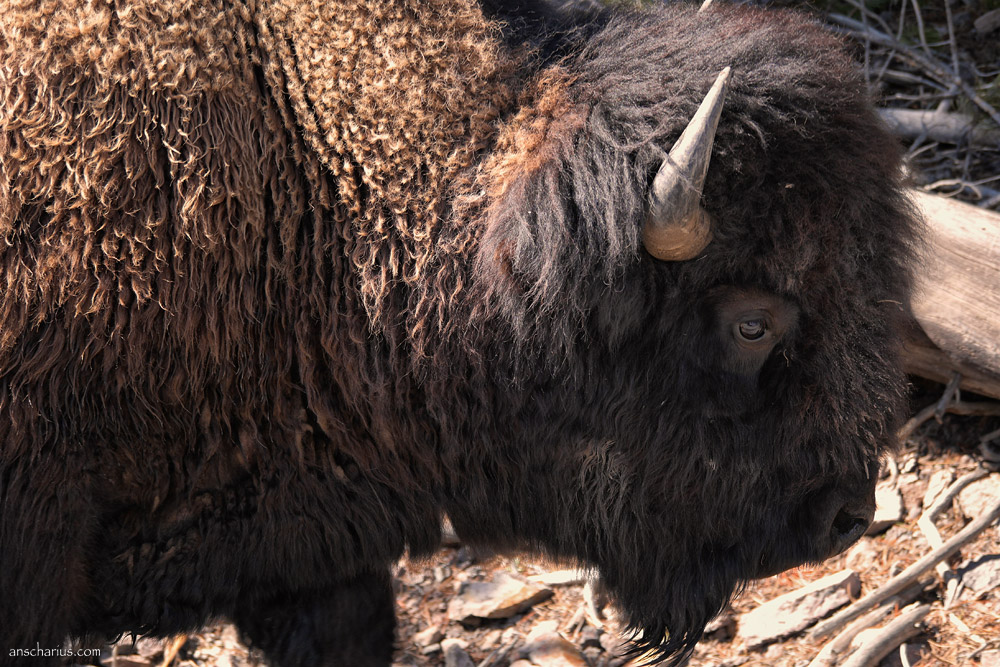 Als Route habe ich mir den südlichen Eingang des Yellowstone ausgesucht und möchte so ganz nebenbei noch den Grand Teton Nationalpark besuchen. Aber als die Grand Tetons bereits als zum Greifen nahe erscheinen ist die Straße irgendwann einfach zu Ende. Vor mir liegt eine fast einen Meter hohe Schneedecke, hier komme ich nicht weiter. Zähneknirschend geht es fast eine Stunde lang wieder zurück. Über den westlichen Eingang ist der Yellowstone National Park dann erreichbar. Zwischendurch halte ich immer mal wieder an und mache Fotos von Büffeln, Rehen und allerlei anderem Getier.
