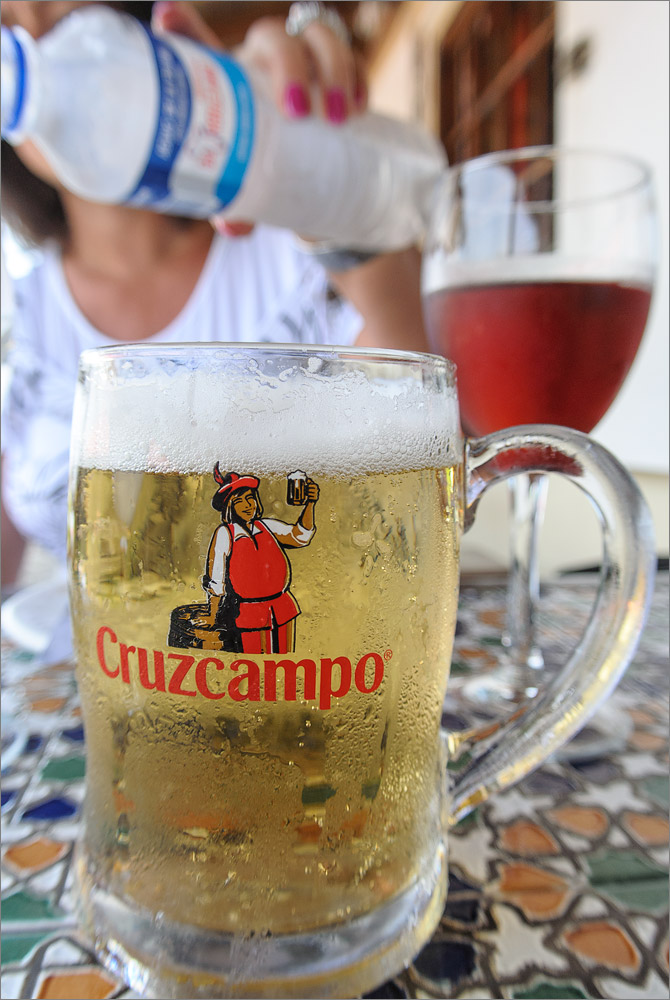 Dazu gibt es kaltes Bier aus einem eisgekühlten Bierkrug. Beim ersten Zug kommt mir eine kleine Eisscholle aus gefrorenem Bier vom Grund des Kruges entgegen – cool!