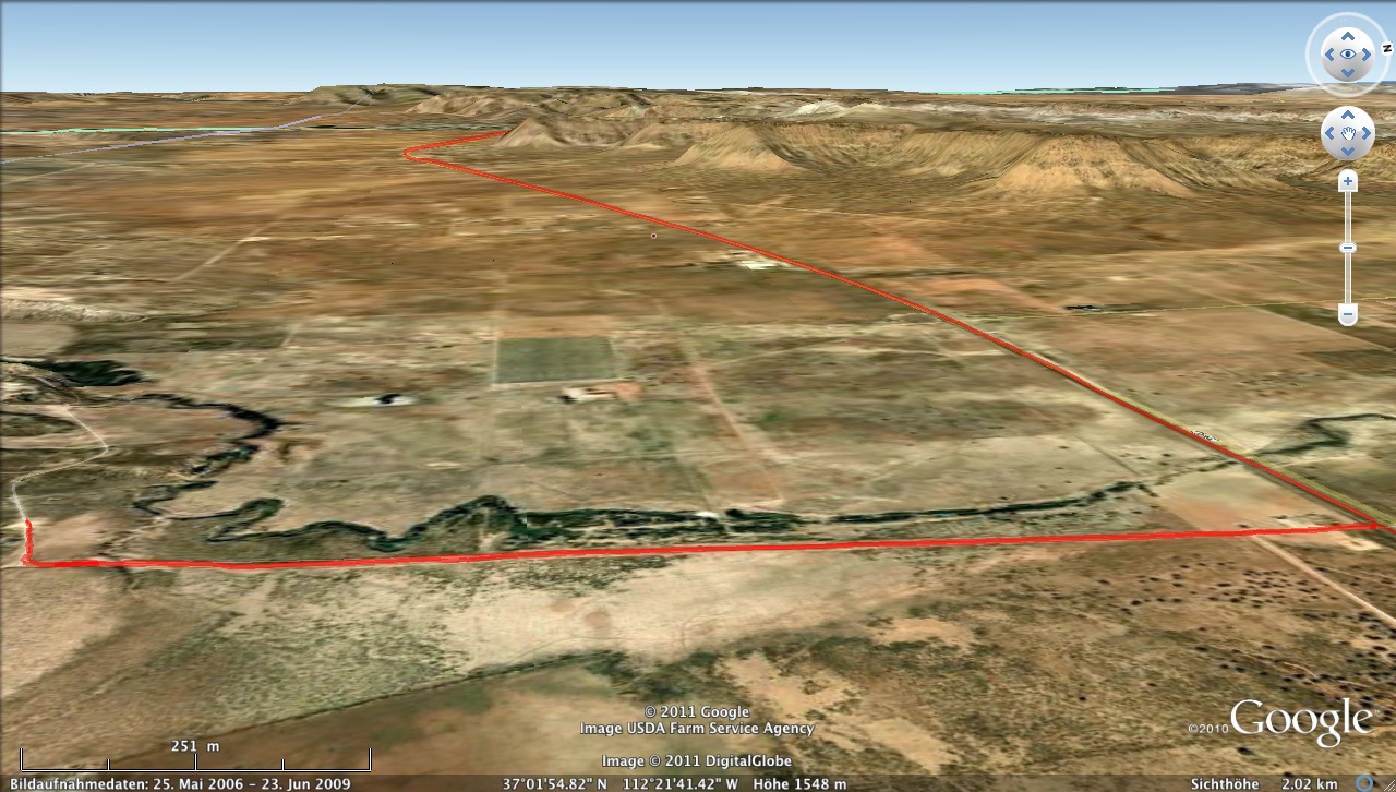 Mit dem Auto hat man keine Chance. Ich habe mir die Gegend nun zum zweiten Mal intensiv angeschaut und denke man kann da nicht schummeln. Also, wenn Hunt’s Mesa, dann für Geld mit Tourguide und ganz offiziell.