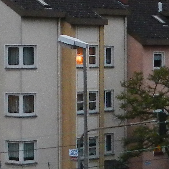Nun sind wir bei 2.000 x 1.500 Pixel – sprich bei 3 MPix angekommen. Das ist das Niveau einer Nikon D1h die vor 12 Jahren auf den Markt kam. Die Gebäude erscheinen klar konturiert, es sind kaum noch Bildstörungen zu erkennen und so traurig es auch sein mag, bei etwas längeren Belichtungszeiten und ISO-400 kann man aus einem winzig kleinen Chip eben keine Wunder heraus zaubern.