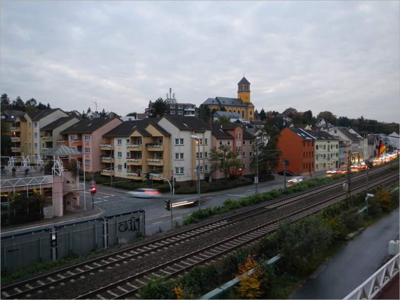 Mein „Testobjekt“ ist die kleine Nikon AW-100. Nach der Arbeit geht es im letzten Tageslicht von meinem Appartement aus ein paar hundert Meter am Rhein entlang auf eine kleine Fußgängerbrücke. Ein Stativ habe ich nicht dabei, aber es gibt mehrere massive Betonpfeiler auf denen man die Kamera sehr gut abstellen und dann mit dem Selbstauslöser „bedienen“ kann. Später suche ich mit ein Foto aus und schaue mal was die interne Bildbearbeitung so hergibt. Der erste positive Eindruck, man macht nichts „kaputt“. Es werden stets Kopien des bearbeiteten Originals gespeichert. Wirklich praktisch! Weniger praktisch ist, dass man Effekte nicht mehrfach nacheinander anwenden kann. Also eine Kombination aus „Miniatur-Effekt“ und „Delithing“ ist nicht möglich!