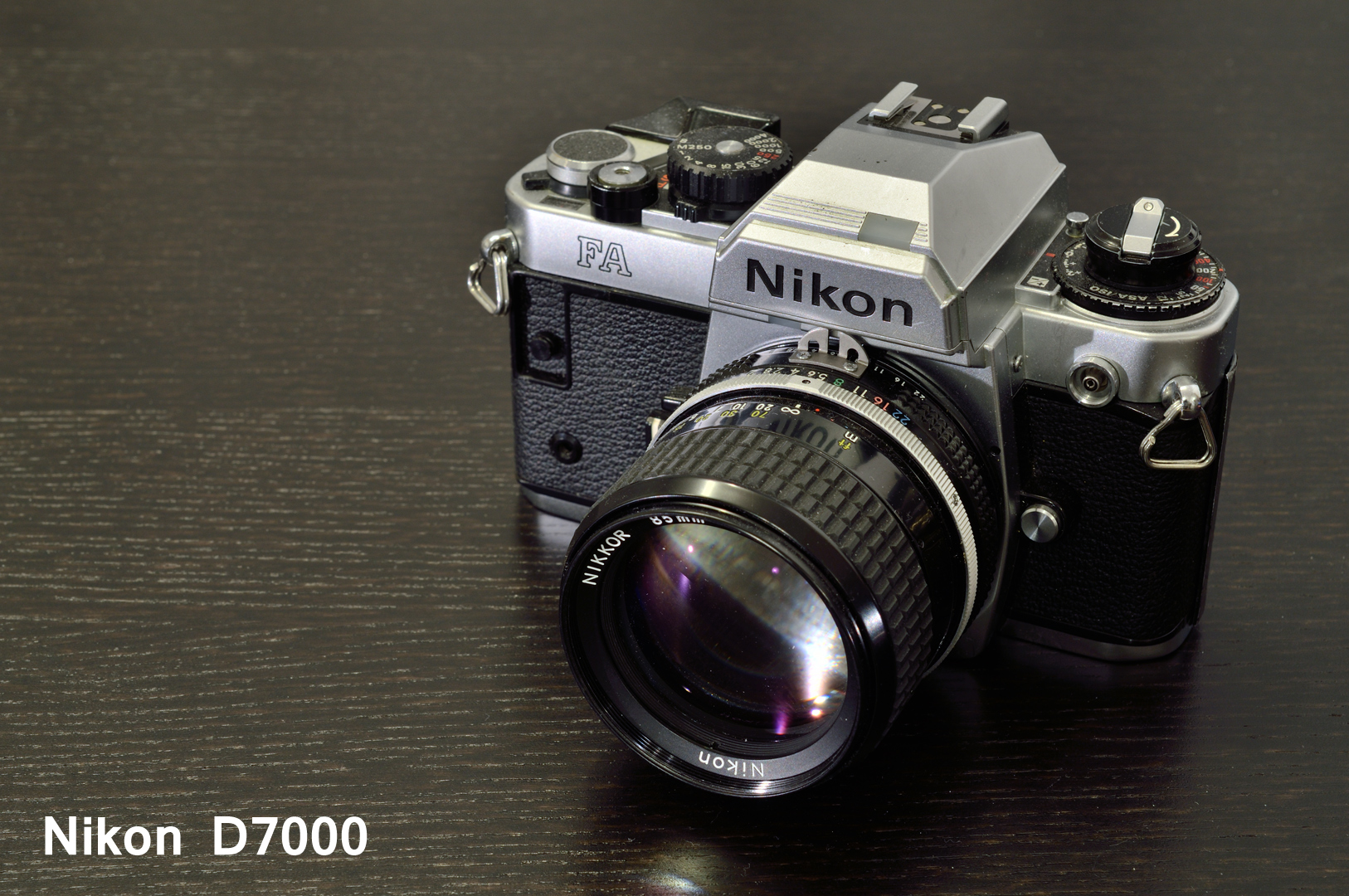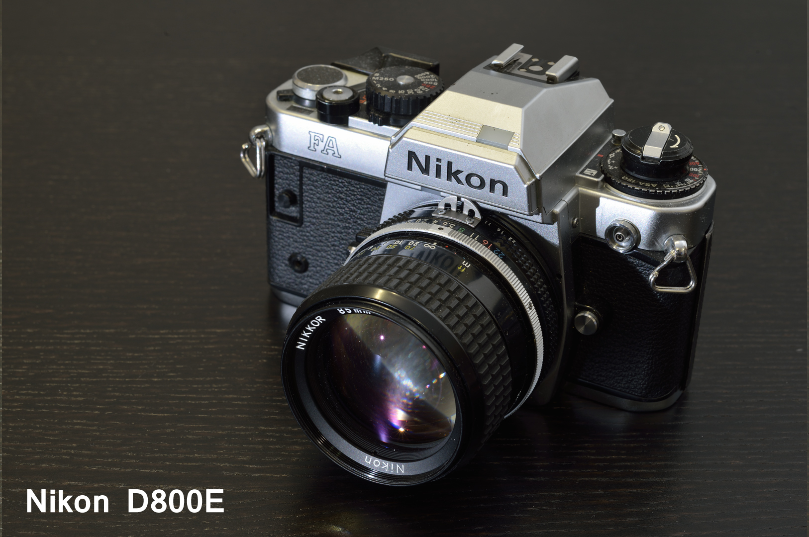 Schauen wir uns mal die Kamera an, die ich im oberen Bild unten rechts positioniert habe. Es ist eine Nikon Fm3a, eine Kamera mit einem einzigartigen Hybrid-Verschluss. Diese Kamera kann man zu 100% mechanisch betreiben, oder sie alternativ in Verbindung mit einer kleinen Knopfzelle mit einer Belichtungsautomatik verwenden. Diese Zeitautomatik mit Vorwahl der Blende funktioniert wirklich gut und liefert bis heute tolle Ergebnisse mit überraschend wenig Ausschuss. Im Bild ist an diese Kamera ein Nikkor AiS 1.4/50mm montiert, eine bärenstarke Linse die man aktuell bei eBay & Co mit ein wenig Glück für etwa 150 Euro zu ergattern kann. Dieses Objektiv hat noch „Hasenohren“ die an der Fm3a gar nicht notwendig wären und noch aus der Ära der Nikon F und F2 stammen. Damals hatten die Kameras eine mechanische Kopplung von Blendenring und Belichtungsmesser über diese charakteristischen „Hasenohren“.