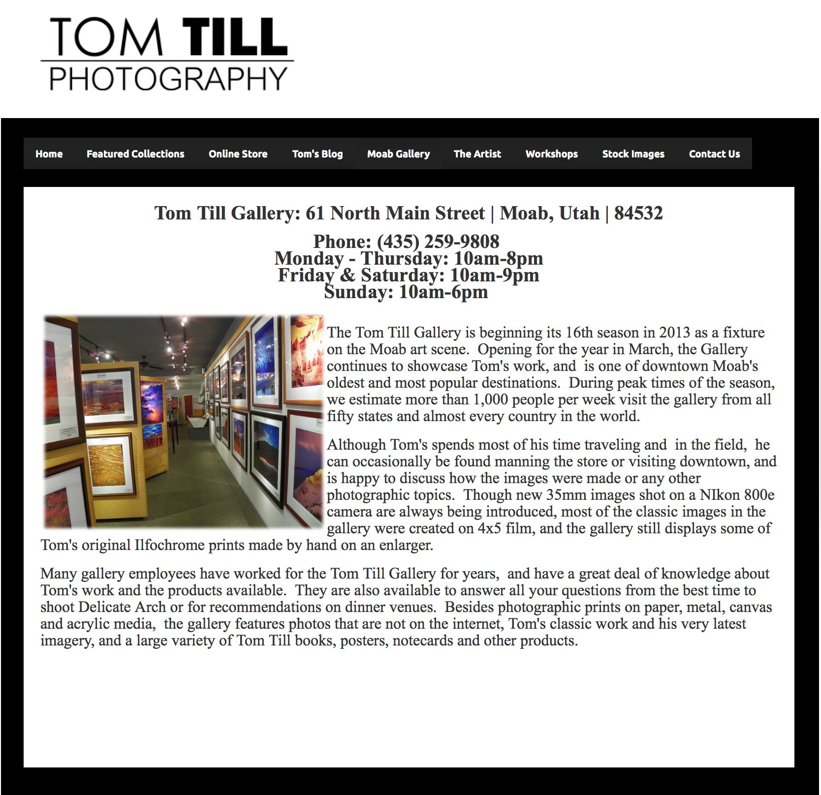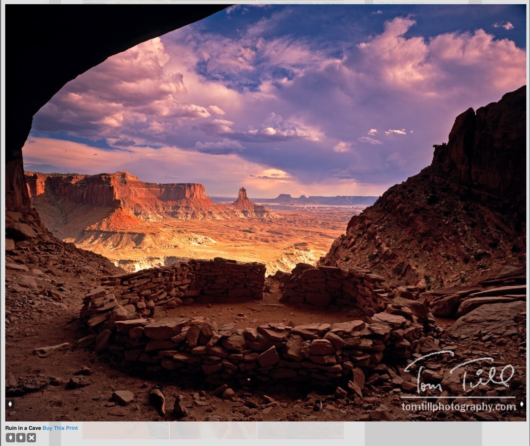 Der in Moab ansässige Fotograf Tommy Till war einer der Ersten, vielleicht sogar DER erste Fotograf der Fotos aus der False Kiva im Canyonlands National Park bereits vor vielen Jahren veröffentlich hat. In seiner Galerie in Moab ist dieses Foto bis heute eines der Highlights der Ausstellung. Tom Till hat damals eine schwere und handliche Großformat-Kamera mit Planfilmen benutzt und auf der Basis dieser Vorlagen exorbitante Vergrößerungen erstellt. Diese hochwertigen großen Vergrößerungen auf „richtigem Fotopapier“ können in seiner Galerie bewundert und zu Preisen ab ca. 2.000$ erworben werden.