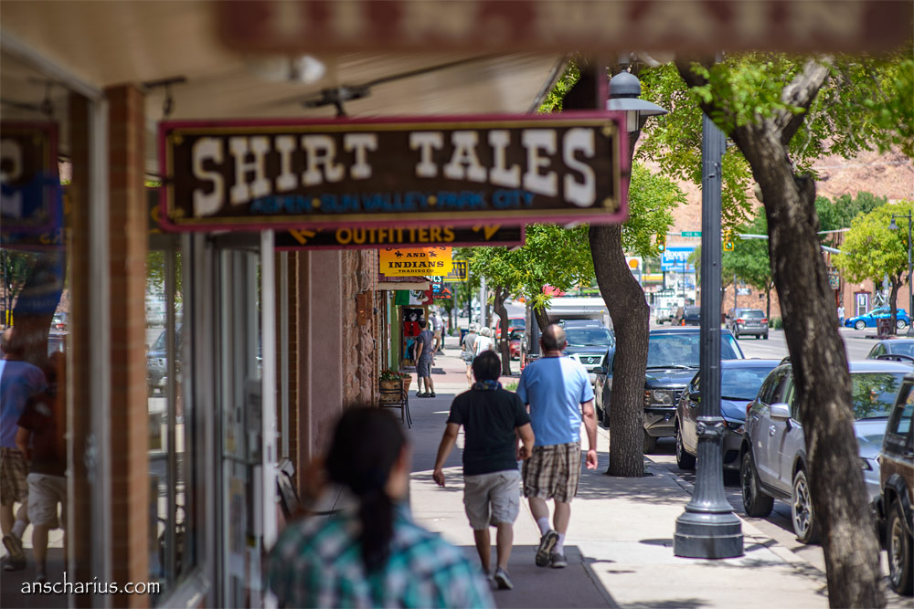 Einige hundert Meter weiter kann ich sie dann sehen, sie ist etwas oberhalb von mir und schon fast an der False Kiva angelangt. Plötzlich lösen sich einige etwa faustgroße Steinbrocken und rollen auf mich zu. Oh nein, jetzt keine Kopfverletzung schießt es mir durch das Hirn. Instinktiv wende ich mich ab, mache mich klein und halte meine Arme schützend hinter meinen Kopf. Aber die schweren Brocken schlagen einige Meter hinter mir auf. Puh, das ist ja noch einmal gut gegangen. Noch vorsichtiger mache ich mich wieder auf den Weg. Als ich schließlich reichlich verschwitzt und aus der Puste in der False Kiva ankomme sind dort zwei Jungs in ein Mädchen – Corinna, Chris und ein Freund dessen Namen ich leider vergessen habe. Chris fotografiert auch mit einer Nikon D800E, sein Freund benutzt ein Canon DSLR. Corinna begleitet ihre Freunde nur und vertreibt sich die langweilige Wartezeit mit ein paar Spielen auf ihrem iPhone.