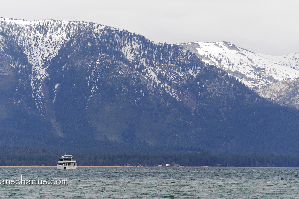 Nach einer kurzen Pause geht es um 12h wieder weiter. Im Internet habe ich gelesen, dass ein paar hundert Meter die Straße hinunter ein Schaufelraddampfer die „Tahoe Queen“ um 13:30 ablegen wird. Das könnte eine schöne Tour werden, das Wetter ist inzwischen nicht mehr wirklich schön, der Himmel ist mit schweren Wolken verhangen und daher entschließe ich mich mal eine der großen Attraktionen auszuprobieren.