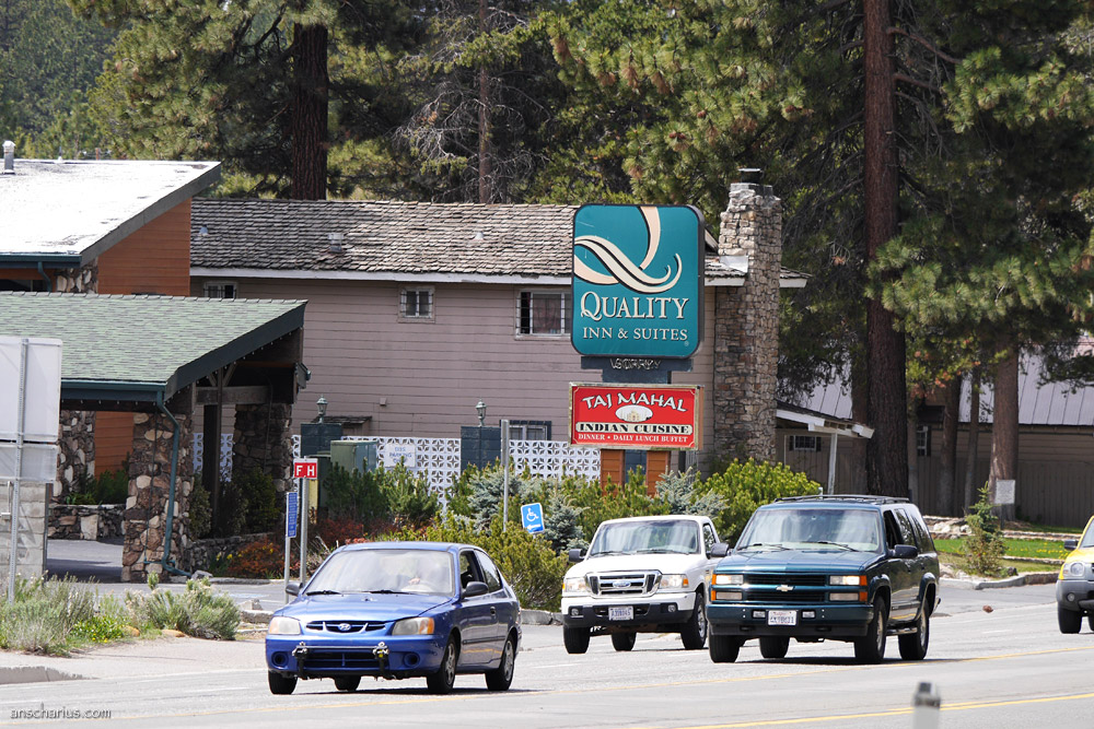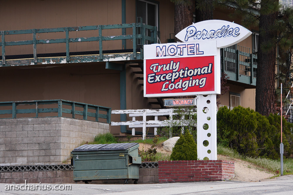 Nun bin ich schon eine Woche in den USA, habe eine abenteuerlich schwere Fotoausrüstung mit drei Kameras und etlichen Objektiven mitgeschleppt und letztlich fast ausschließlich mit der Nikon D800E und dem AF-S 2,8/14-24mm fotografiert. So kann das einfach nicht weitergehen! Mein Schlafrhythmus hat sich inzwischen etwas normalisiert, das Jet-Lag habe ich weitgehend verarbeitet und so geht es um so gegen 8h zum Frühstück. Als ich die Rezeption betrete riecht es dort nach Kaminholz. Und tatsächlich, hier wird mit echtem Holz in einem offenen Kamin geheizt, das hat doch was. Um die Ecke ist ein sehr urig eingerichteter Bar-Bereich, dort bin ich ganz allein und es gibt ein ganz ordentliches Frühstück. Hat man sich erst einmal daran gewöhnt, dass es hier kein Schwarzbrot und keine Brötchen gibt und man sich seinen Toast auch nicht mit Käse oder Wurst belegen kann, dann ist das Frühstück eigentlich ganz ok. Man kann davon satt werden und das Obst, Yoghurt usw. sind auch von guter Qualität.