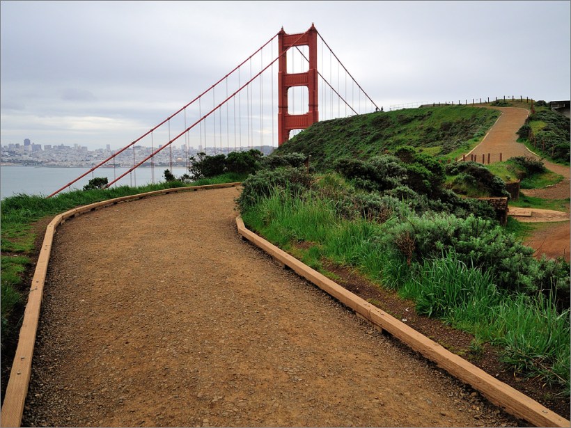 Wir starten in Richtung Mariposa. Es geht zuerst über die Golden Gate Bride. Diesmal der Sonne entgegen, das kostet heute 6$. Warum es gestern kostenlos war verstehe ich nicht, ist schon seltsam. Auf der anderen Seite verliert sich die Straße dann in der Innenstadt von San Francisco. Ich versuche mit wiederholten Blicken zum „Navifon“ möglichst nah am Ufer zu bleiben. So haben wir immer wieder schöne Blicke auf die Bucht. Einen kleinen Fotostopp gibt es dann auch noch. Der Blick rüber nach Alcatraz ist herrlich.