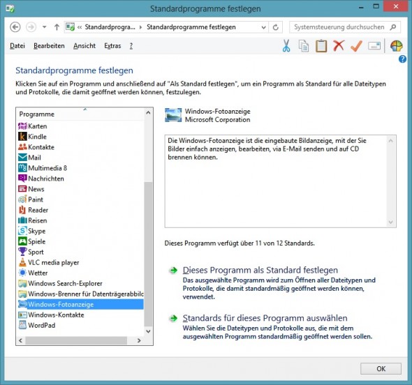 Wenn also das alles schon nicht geht, dann versuchen wir mal den VLC Mediaplayer zu installieren. Und siehe da, das klappt ganz vorzüglich, er spielt alles ab von der DVD bis zum MP3 und vielen leicht esoterischen Audio-Formaten. Dabei sieht alles aus wie es schon bei Windows 7 ausgesehen hat, nur sind die Rahmen der Fenster nicht mehr transparent. Überhaupt ist alles nun flach, eckig und hat nur selten mal einen Farbverlauf. Der Grund ist klar, dieses Windows ist dafür gemacht auf leistungsschwachen Tablet-PCs schnell zu funktionieren. Unabhängig von der Auflösung der Displays muss alles schnell und einfach skaliert werden können, denn dieses Windows 8 muss auf unterschiedlichster Hardware funktionieren. Apple hat es diesbezüglich wesentlich leichter. Es gibt einige wenige iPad und iPhone Versionen, das war es dann auch schon. Bei Apple hat man die gesamte Hardware unter eigener Kontrolle während Microsoft mit Windows 8 wieder einmal einen regelrechten „Hardware-Zoo“ bedienen muss.